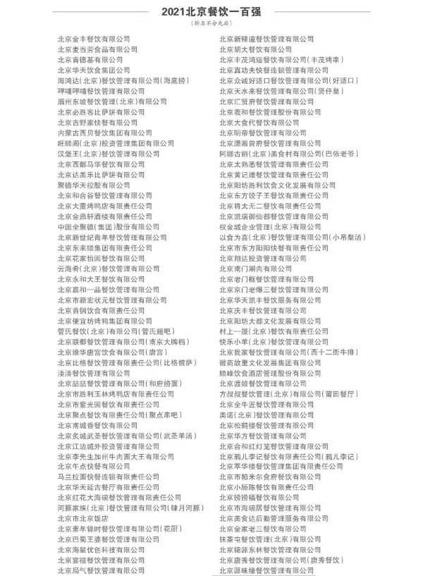 北京源味缘餐饮管理有限公司荣获——北京餐饮品牌TOP100!