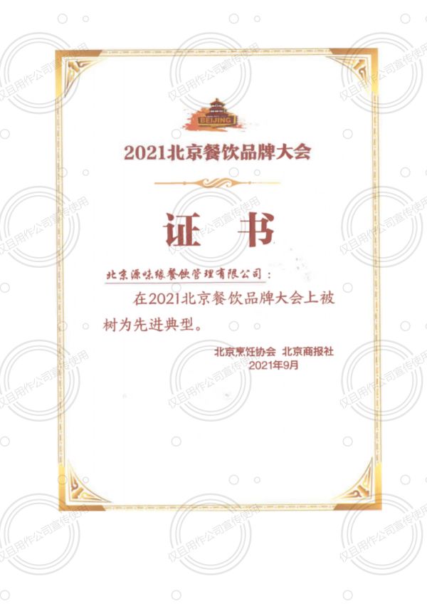 优秀的餐饮品牌总是让人念念不忘,成为在舌尖上流连的味道。经过层层筛选,9月5日,2021北京餐饮品牌大会在北京国家会议中心举办,大会以“数字新驱动 餐饮新变局”为主题,由北京市商务局指导,北京烹饪协会、北京商报社联合主办。北京源味缘餐饮管理有限公司荣获——2021北京餐饮一百强荣誉称号。